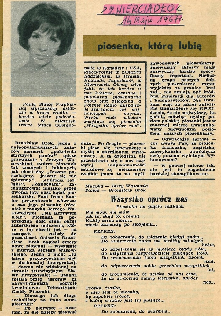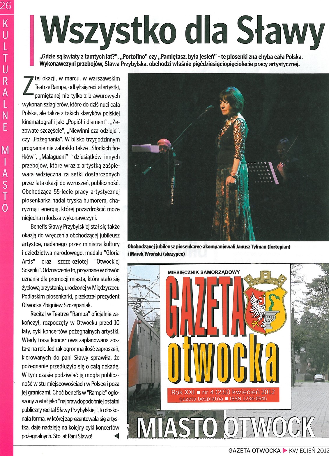 Media (Radio/ tv/ Prasa) Radio Pogoda - Sława Przybylska 93-letnia Sława Przybylska NIE MOŻE ROZMAWIAĆ Z WNUKAMI. Bolesne wyznanie legendy! - Sława Przybylska gościem w Świat Gwiazd u Mateusza Szymkowiaka Finał The Voice Senior 5 "Pamiętasz była jesień" TVP2 Pytanie na śniadanie Sława Przybylska gościem w Radiu RDC w audycji Nuli Stankiewicz "Kobiecy wieczór" Historia kariery, pięknej miłości i okrutnej nienawiści - Podcast Sława Przybylska Wizyta w Radiu Pogoda - emisja programu 9 kwietnia godz. 14-18 niedziela Wizyta w Radiu Plus Warszawa - spotkanie z Markiem Sierockim Artykuły prasowe